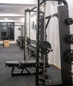 Ein ruhiger, hochwertiger Trainingsraum mit klarer Atmosphäre,